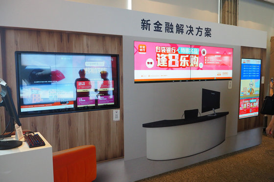 在商用顯示的區(qū)域,優(yōu)派向大家展示了已運用于高端商圈和金融界的新零售及新金融解決方案。新零售解決方案包括了多尺寸商用大屏展示、微邊框拼接屏方案、激光電視、觸控導(dǎo)購設(shè)備以及觸控商圈樓層導(dǎo)航設(shè)備等,旨在為商家提供最優(yōu)質(zhì)的展示方案,所有廣告、產(chǎn)品信息、活動信息都可以通過多樣的大屏展示方案來展現(xiàn)給客戶,并且在網(wǎng)絡(luò)環(huán)境下通過觸控導(dǎo)購設(shè)備可以展示更多店內(nèi)無法陳列的產(chǎn)品,觸控樓層導(dǎo)航使用戶體驗更便利,打造高端商圈環(huán)境;新金融解決方案亦包括了多尺寸商用大屏的展示,更將銀行信息系統(tǒng)帶到現(xiàn)場,直觀分享各類金融信息,現(xiàn)場還配有無線傳屏演示,將手機畫面直接同步到大屏上,便于在實際運用中銀行工作人員對客戶進行推介及展示。