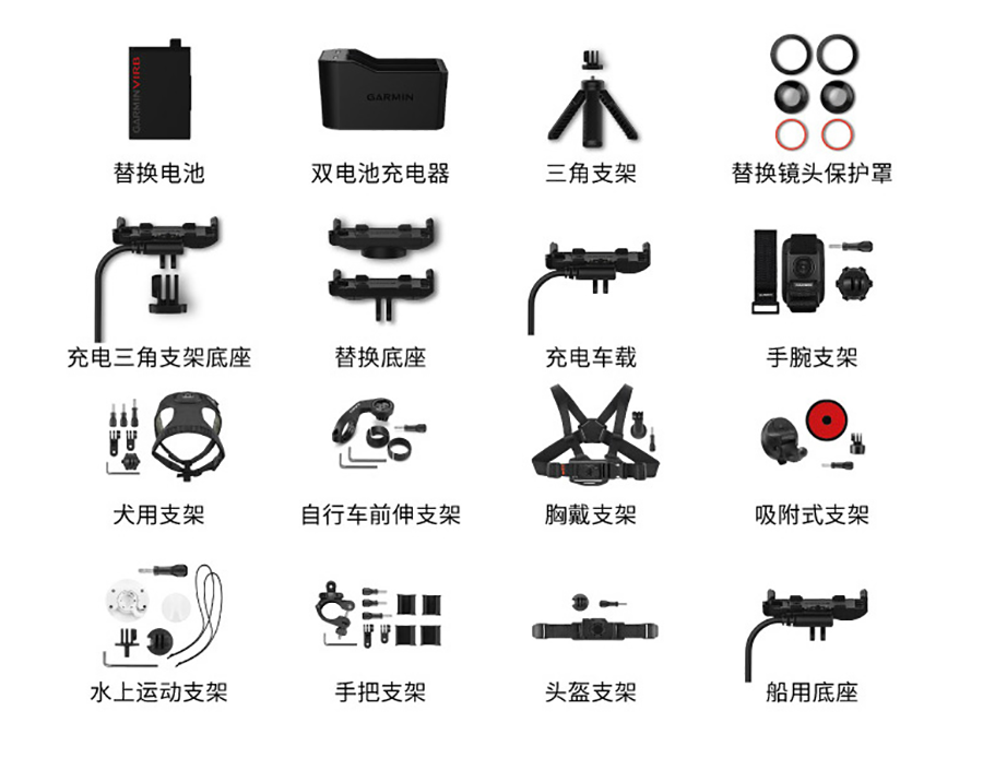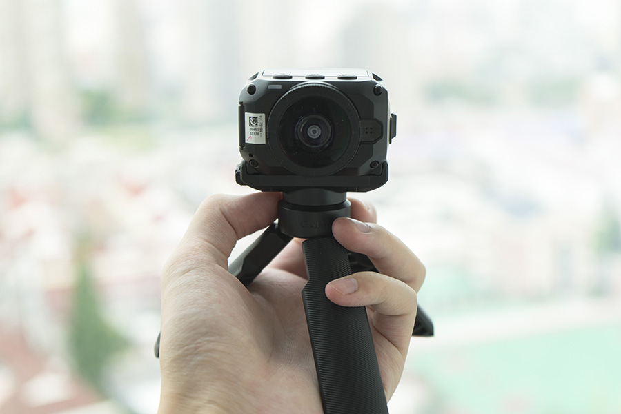 看到VIRB 360的第一眼,便被它那兩個碩大的攝像頭給吸引了。但即使如此,整個相機的體積卻依然小巧,一手即可握住,非常便于攜帶。VIRB 360標配了一個三角支架底座、一個通用支架底座和一個三角支架,此外還提供了許多其它配件可供選擇,當然這些都是需要額外購買的。