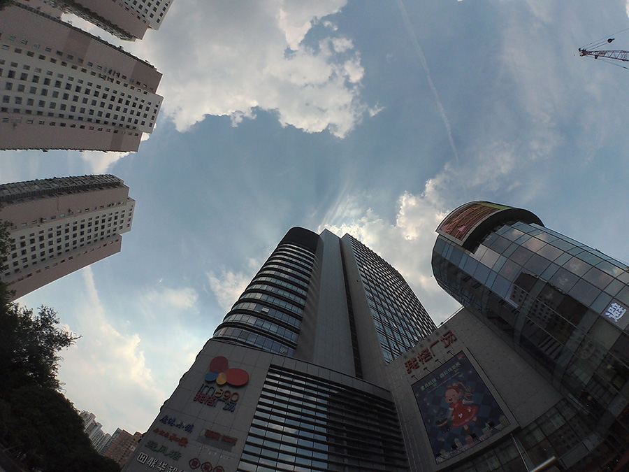 通過樣張我們可以看到,使用單鏡頭模式拍攝時可以得到魚眼鏡頭的拍攝效果,在拍攝建筑和風景時,超廣角能夠容納更多的內容,視覺沖擊力較強。在畫質上,VIRB 360的色彩表現較差,畫面整體偏素,不過好在銳度夠,遠處建筑的邊緣清晰,整體觀感還不錯。從VIRB 360錄制的全景視頻中我們能夠看到,在畫面的拼接處有明顯的痕跡,但整體并不影響觀看,并且由于它配備了陀螺儀和智能電子防抖,在行走過程中錄制的視頻也不會出現畫面有較大晃動的情況,通過機身的四個麥克風,還可以捕捉全方位的聲音,在對視頻進行回放時,隨著畫面的轉動,聲音的方位也會跟著畫面變化。
