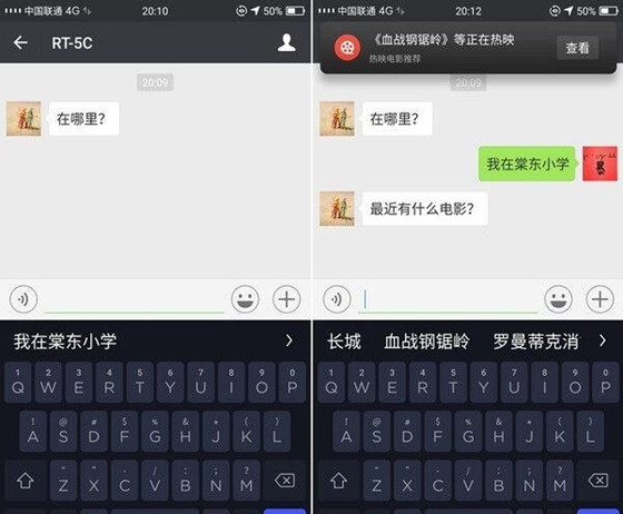 華為榮耀Magic搭載的Magic Live智能化系統,一經推出就引起過轟動,其最大的特點是,能根據當前的使用場景,智能地預測用戶將使用的功能,并為用戶準備好一鍵直達的功能選項。而這一特點在微信上表現為:系統可以根據微信的聊天內容,自動生成當前地址、天氣、時間、熱門電影等信息,并自動顯示在輸入法候選詞中,用戶可一鍵發送,甚至在談論到電影、食宿等話題時,會有一鍵進入選購軟件的懸浮窗出現。這種智能化的體驗,也被很多人稱為“一個能讀懂自己心思的系統”。