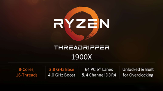 AMD發(fā)燒級處理器系列推出入門款1900X