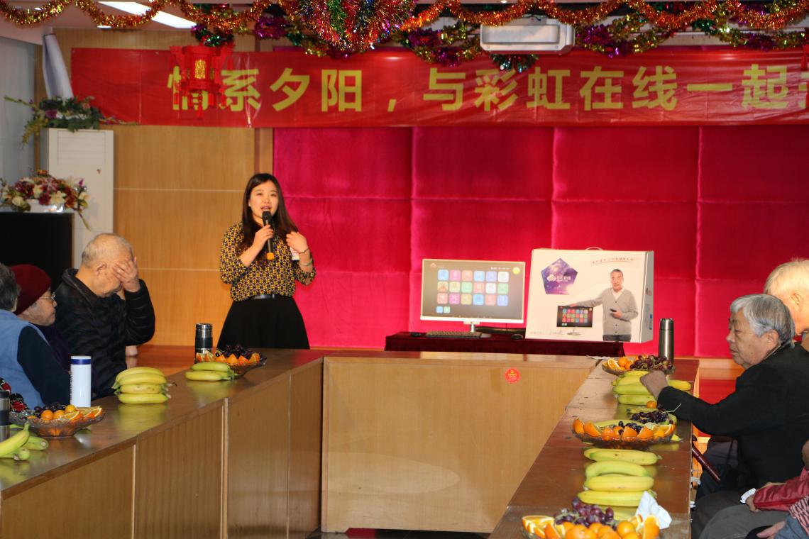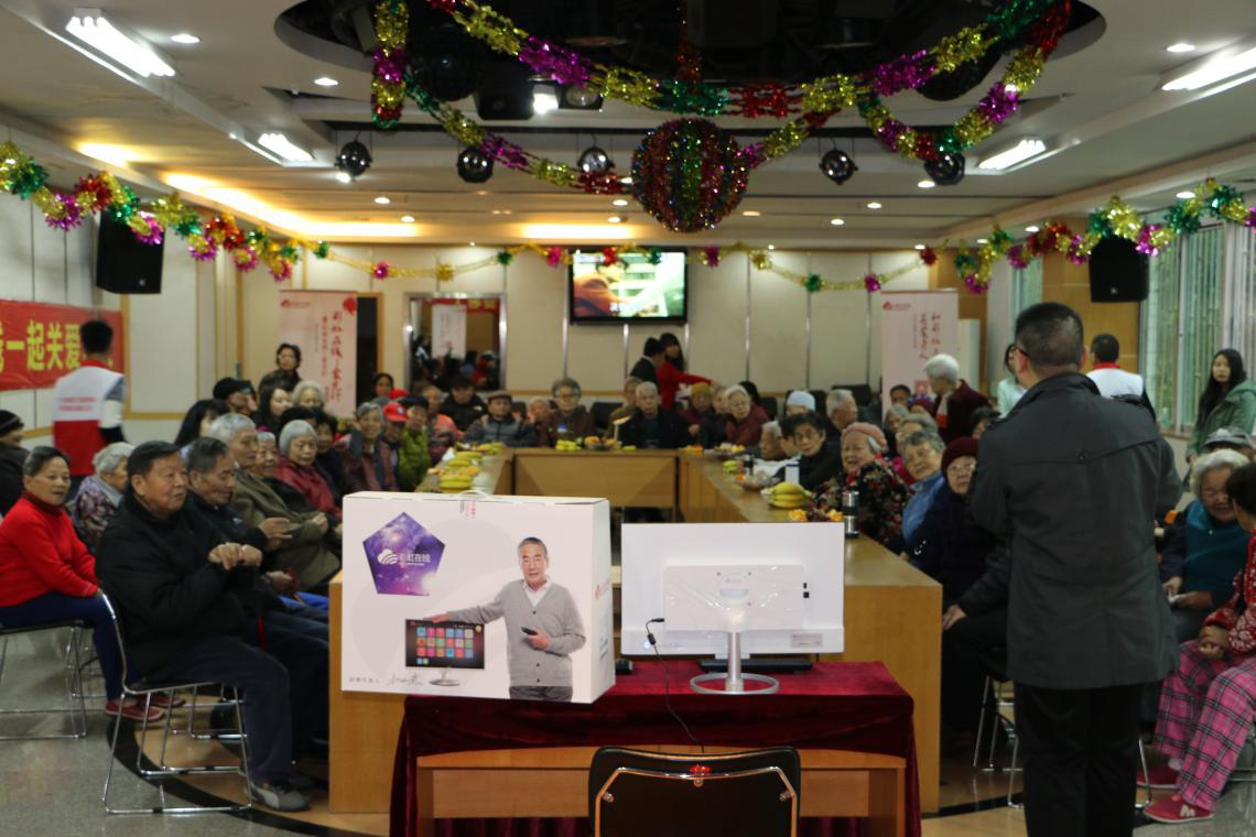 和彩虹在線一起關愛老年人!此次公益行動的第一站,位于深圳市福田區梅林路社會福利中心老人頤養院。活動主辦方彩虹在線(“深圳市七彩虹互聯網絡科技有限公司”)向現場老人送出“彩虹在線老人語音智能一體機”。濃濃的科技風及暖暖的“關愛”充盈了整個敬老院。