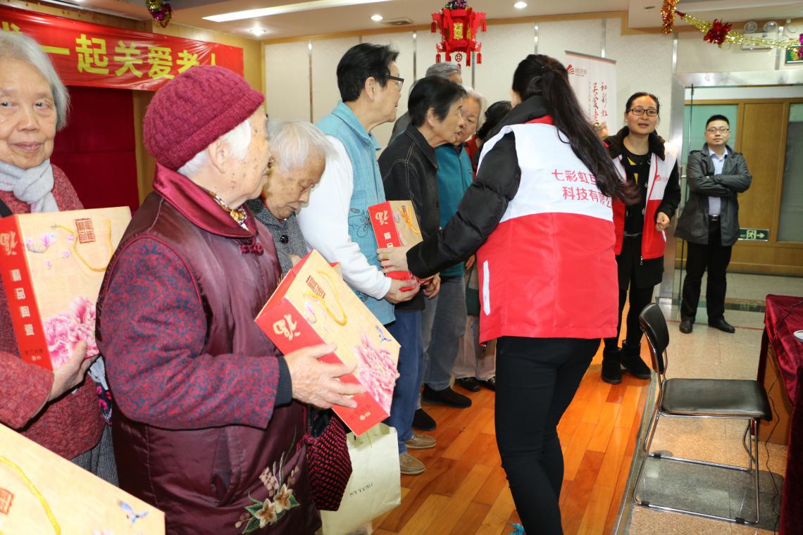 彩虹在線愛心工作人員向老人們分發精美禮品