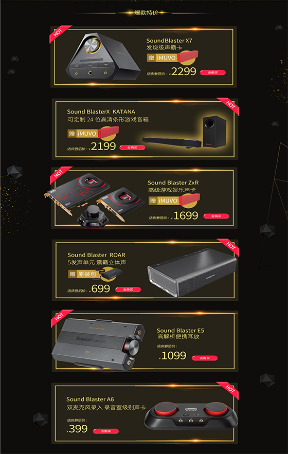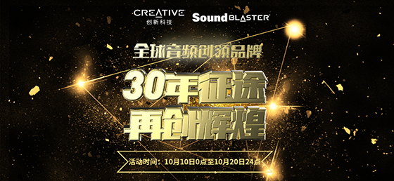2017年10月,創新科技的聲霸卡系列研發至今已經歷經30年成長,在30年的時間里,SoundBlaster享譽全球,已成為聲卡的代名詞。恰逢SoundBlaster30年周年慶典,創新科技旗艦店揭開狂歡帷幕,10月10日0點至10月20日24點,你想得到想不到的優惠全在這里。