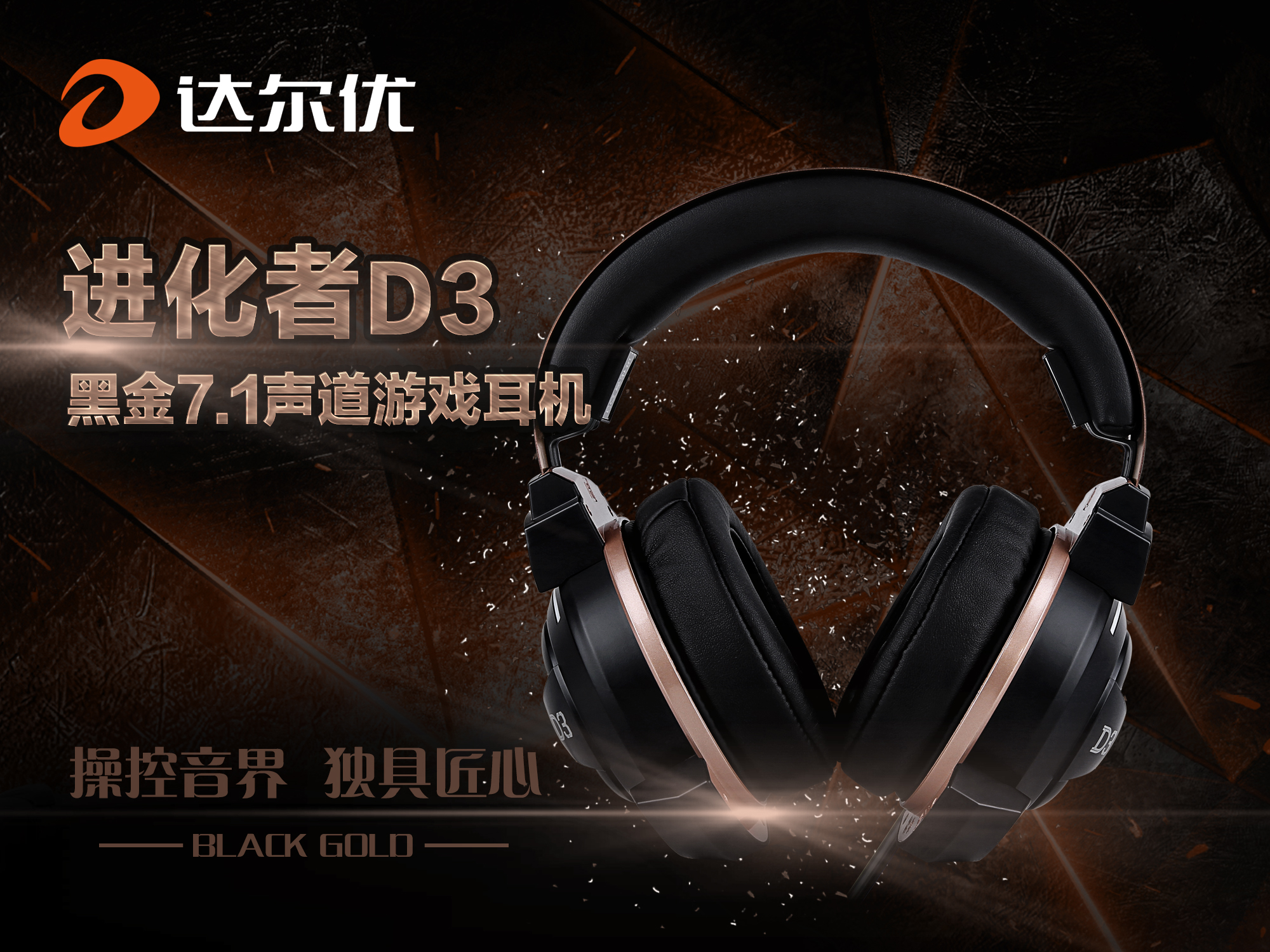 北京時間2016年3月21日,達爾優發布全新進化者系列D3黑金USB 7.1聲道版本游戲耳機,本款產品是在原有D3上增加的一個新的配色,并內置7.1聲道聲卡,USB接口即插即用,更人性化,音效更佳。