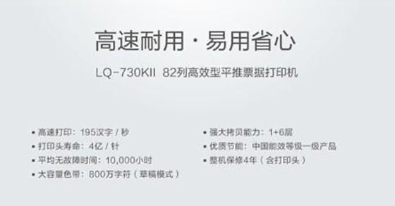 面對發票打印與發票管理的繁重工作,你是否已做好準備?別擔心!愛普生LQ-730KII軟硬兼施,為您提供優質、穩定、可靠、高效的辦公支持,是您財務辦公的不二之選!