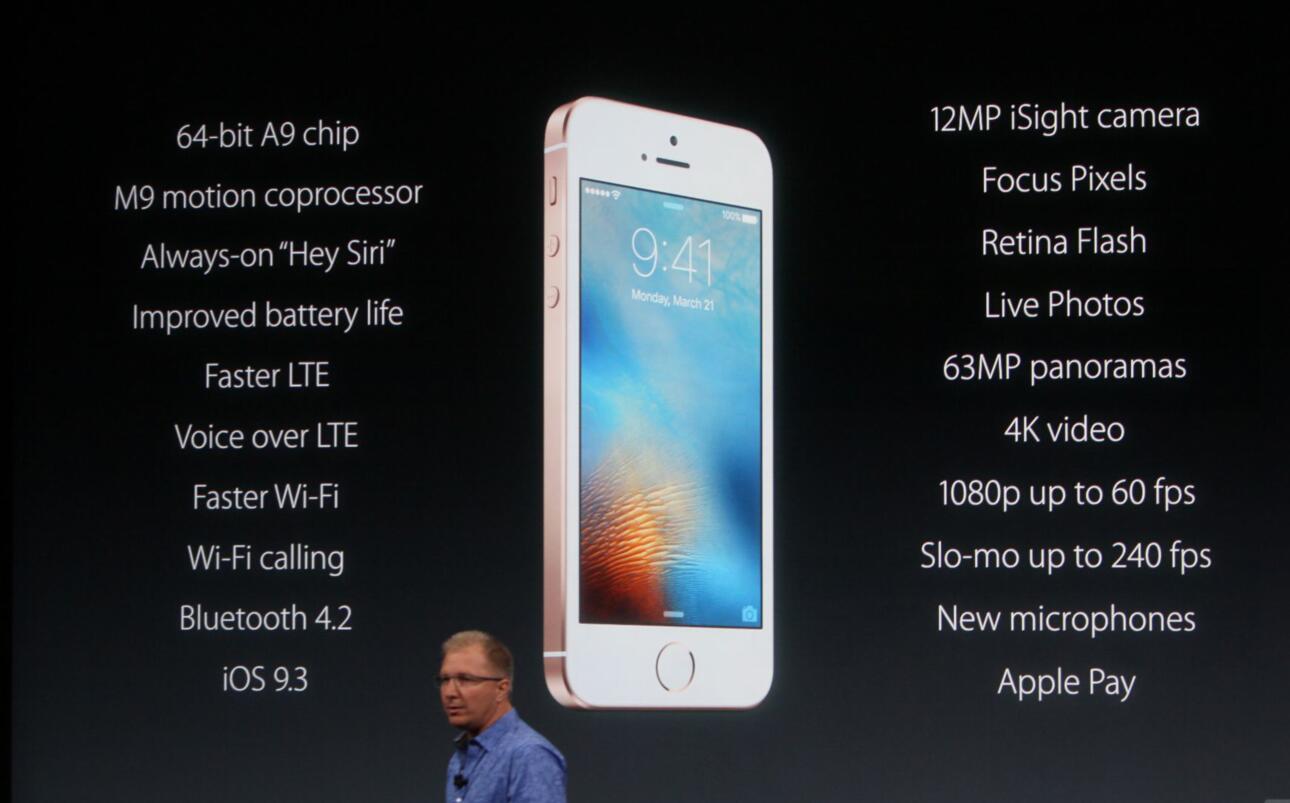 就在今天凌晨,蘋果公司在美國(guó)舉行發(fā)布會(huì),傳聞已久的iPhone SE終于露出廬山真面目。大多數(shù)信息都符合此前的傳言,采用4英寸Retina Display,搭載6S上的A9處理器和M9協(xié)處理器,120萬前置和1200萬像素后置攝像頭,支持Live Photo和4K視頻拍攝。