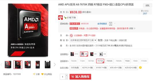 近期伴隨著不少新游戲的強力面世,對于硬件達人們來說選擇一款質量可靠性能穩定處理器才是他們三月首要考慮的問題。目前人們對于整合平臺高度關注,用戶們對功耗,新技術兼容性,性價比的認識達到了新的高度。說到整合平臺,我們就要重點關注一下AMD專門為用戶打造的中端新產品A8-7670K APU了,該APU兼容性強易拓展,完美兼容Windows 10和 DX12標準,并且在整合平臺領域以穩定高效著稱,日前京東價格僅有639元,考慮整合平臺的玩家可以火速去選購了!