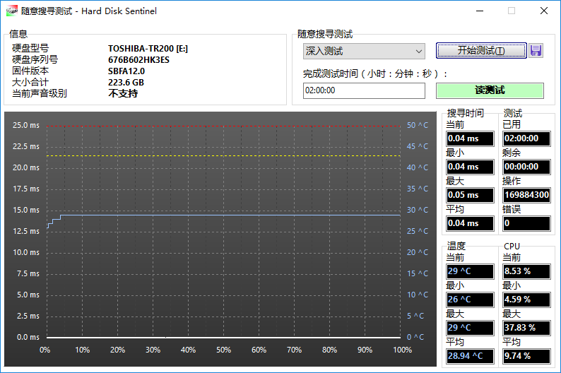 對TR200進行隨意搜尋測試——深度測試,時間為2小時。
