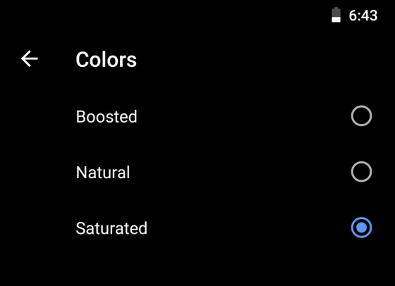 這塊屏幕甚至都逼谷歌緊急更新了Pixel 2 XL的系統,企圖在軟件層面想辦法補救。谷歌十一月的軟件更新增加了底部導航欄自動隱藏功能,以延緩燒屏問題,同時添加新的色彩管理方案,用戶可自主選擇“自然”、“飽和”、“增強”三種色彩模式。不過,更新完系統后仍有有用戶表示,LG這塊OLED屏顯示效果遠不如三星的OLED屏。