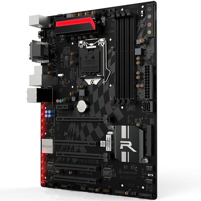 映泰 B150GT5選用ATX大板的尺寸設計,30.5×22cm的規格,黑色底色搭配獨家圖案,相當富有個性。作為一款電競主板,映泰 B150GT5有著獨特的觸控面板,可以為主板選擇節能模式或者高能模式,并且配備雙BIOS模式。另外,映泰 B150GT5采用六相供電,搭配優秀的用料,如黑晶電感、黑金電容、法拉第籠、碳纖維散熱模組等,整體電器性能非常穩定,畢竟該款《極品飛車19》也接近一款網絡游戲,長時間的練級也能輕松應付。