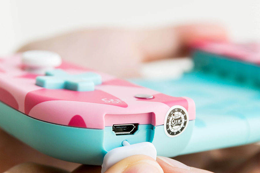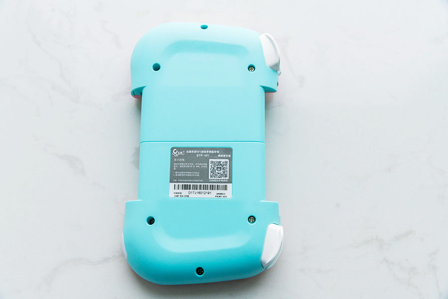開箱后除了手柄本身外還有一根USB連接線和說明書保修卡,這款北通W1感覺在外觀設計上別具風格,粉綠色的搭配很有青春時尚的感受,應該會有不少女性玩家更喜愛這樣的手柄設計。