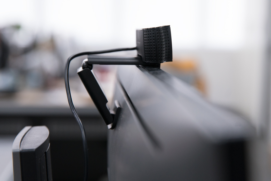 C922 PRO的攝像頭下有簡易的安裝支架,便于用于安裝在顯示器上,節(jié)省桌面空間。