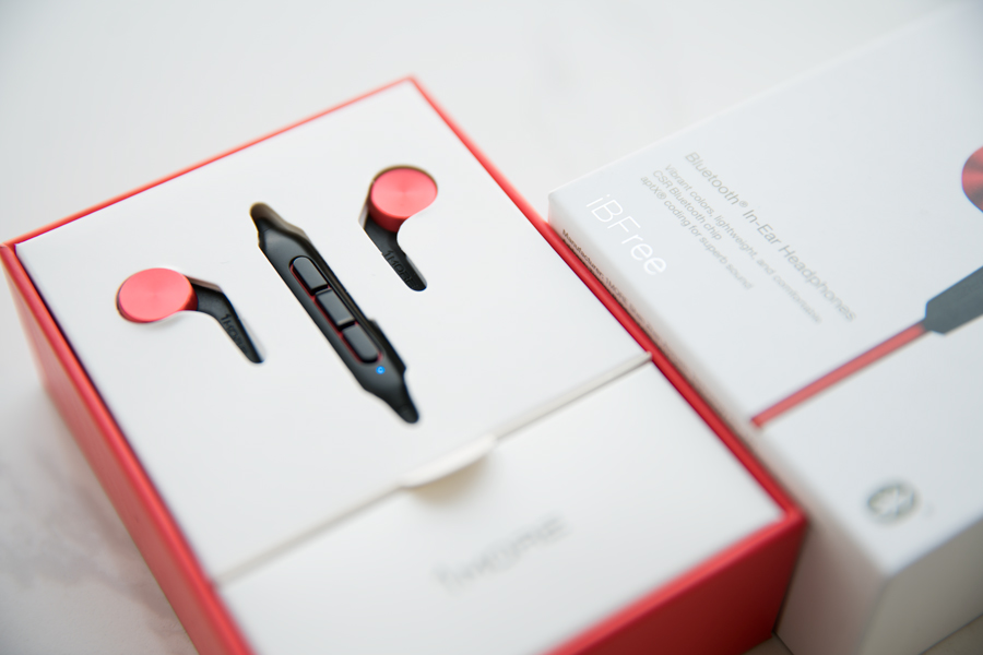 iBFree的控制按鈕、指示燈、充電口、麥克風集成在同一個線控模塊上,靠近右耳耳機的位置。中間的按鈕集中了耳機電源開關、切換配對模式,來電話時的接聽、掛斷、雙擊快速回撥,聽音樂時的暫停、播放等一系列功能;兩側的按鍵則可實現音量+/-、上一曲/下一曲等功能。