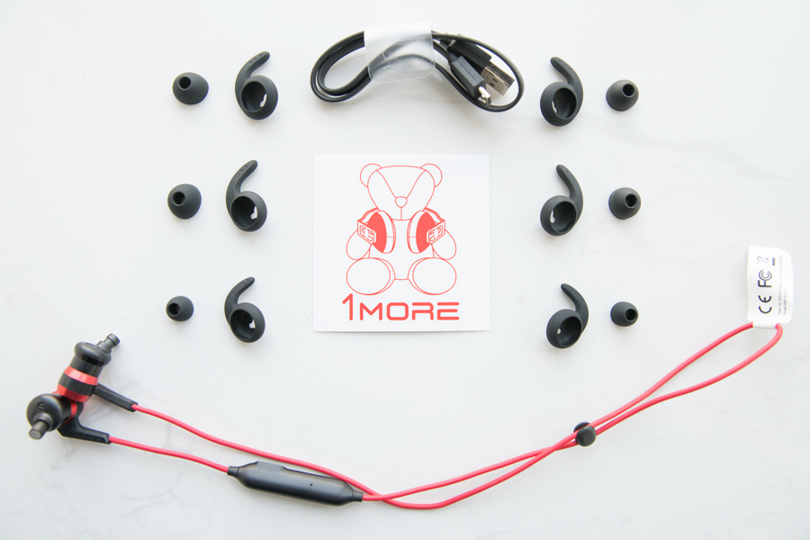 配件方面,一根Micro USB充電線,一張1MORE小熊貼紙和多套耳套。算上已經裝在耳機上的,萬魔為iBFree用戶提供了大、中、小三套不同尺寸的耳套,讓不同耳形的用戶都有最合適的選擇,獲得更好的佩戴體驗。