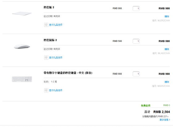 實際上,普通版的妙控鼠標(biāo)2、妙控板2、妙控鍵盤三件套在國內(nèi)售價加起來也不過2564元人民幣,在購買iMac Pro選購這幾個配件時價格也沒有比普通版貴多少。