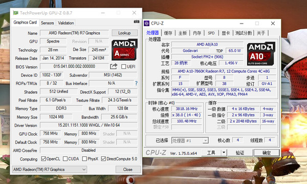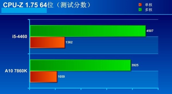 測(cè)試小結(jié):CPU-Z考察CPU的單核和多核性能,屬于純粹的理論運(yùn)算。同樣是4核4線程,A10-7860K相較i5-4460并沒(méi)有什么優(yōu)勢(shì),在多線程運(yùn)算的測(cè)試中均處于落后。
