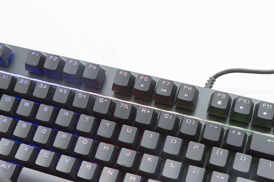 說完這些花里胡哨的東西之后自然是要回歸到機械鍵盤最關鍵的特點——按鍵手感上了。首先,HyperX Mars火星RGB電競機械鍵盤的鍵帽材質為ABS,在表面還做了細膩的磨砂處理,經久耐用,比一般的ABS材質更不容易打油,這也算是變相解決了ABS鍵帽透光效果更好但容易打油的矛盾吧。