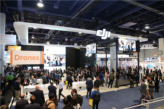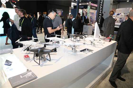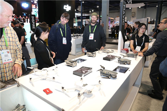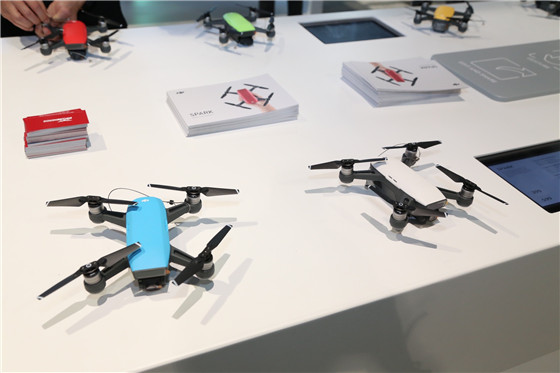 除了發布上述兩款手持云臺新品外,大疆作為無人機產業的巨頭,自然也在自家的展區里羅列了各類無人機的產品供游客參觀,如曉Spark,大疆精靈4以及御Marvic Pro等。