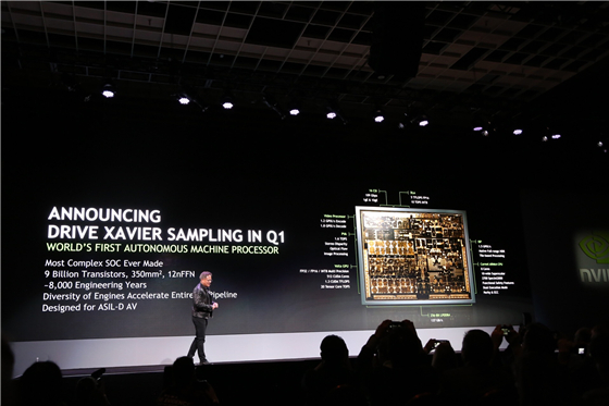 作為全球矚目的消費類科技行業展會,CES2018于1月8日在美國拉斯維加斯拉開帷幕。無數移動互聯網行業和科技愛好人士蜂擁而來,在這里可以首瞻到全球最先進的新技術、新想法,它們一個個落實在有趣的產品之中,標志著人類對消費電子領域研究探索的步伐。英偉達作為全球圖形技術和數字媒體處理器行業領導廠商,于剛剛召開發布會,黃仁勛于會上正式推出DRIVE Xavier,這是一款為無人車準備的AI超級計算芯片,是全球首個自動機器處理器,也是有史以來最復雜、最大的SoC。