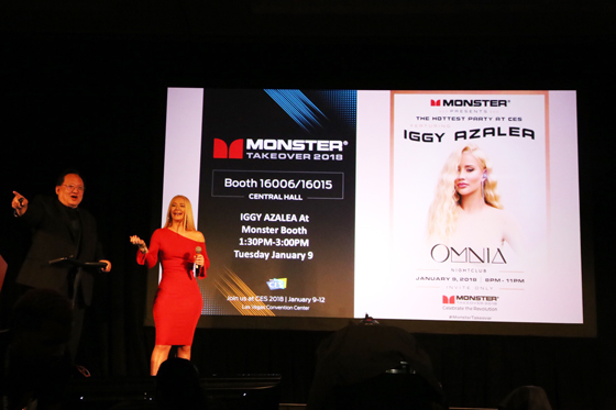 現(xiàn)場,魔聲還邀請了女星IGGY AZALEA試戴Monster AIRLINKS ELEMENTS,并于觀眾分享體驗(yàn)。