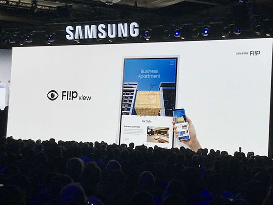 Flip是三星為CES 2018與會者帶來的“未來工作場所”的愿景。Flip的支架帶有滾輪,可將任何位置轉變為雜居空間,這意味著會議空間有限的企業可以更靈活地使用。