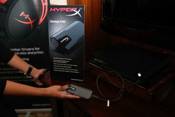 首先來看看存儲設備。HyperX此次帶來了HyperX Fury RGB SSD、HyperX Savage EXO External SSD、HyperX Predator DDR4 RGB內存三款新品,其中HyperX Fury RGB SSD和HyperX Predator DDR4 RGB都有RGB燈光系統。