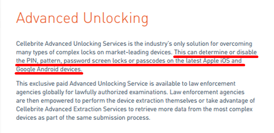 如今Cellebrite為政府機構提供UFED(萬能取證設備 Universal Forensic Extraction Device),允許他們自行提取數據。
