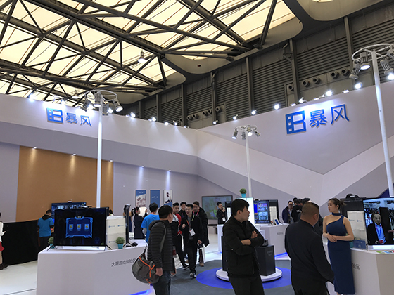 暴風TV的展臺內還設置有暴風魔鏡體驗區,暴風魔鏡也是它們的經典產品,觀眾在現場被虛擬現實的巨大魅力和震撼效果所征服。暴風展臺內還有許多觀眾在使用暴風AI人工智能電視體驗大屏游戲的暢快,場面十分熱鬧。