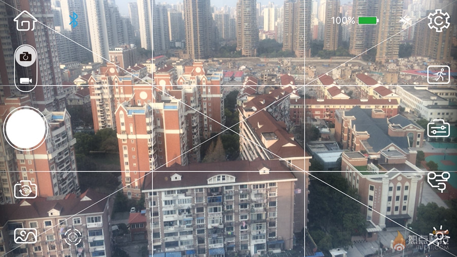 當藍牙配對成功后點擊進入相機就可以看到拍攝的各類菜單了。我們以蘋果手機為例,拍攝界面的左邊功能布局由上至下依次為返回主頁、拍照和視頻切換功能、前置后置攝像頭的切換以及相冊。拍攝界面的右邊功能布局由上至下依次為穩定器的設置、拍照視頻設置、相機的參數設置、情景模式設置以及濾鏡。穩定器的設置包括了穩定器俯仰軸,橫滾軸和航向軸的的各類參數角度的校準及直播功能。如在拍照模式下,拍照的設置里有普通拍攝,全景模式拍攝和長曝光拍攝3種類型,并且還有定時拍攝和HDR的功能。如在視頻模式下,設置則有普通視頻錄制,慢動作,延時攝影和運動延時攝影這幾種類型。相機的參數功能中包含有分辨率、白平衡、網格線、閃光燈等各種功能方便我們更方面的掌控拍攝的內容做出合理的曝光。另外安卓版App相比蘋果ios版App有些功能缺失,可能會在之后的版本更新中加入缺失的功能。