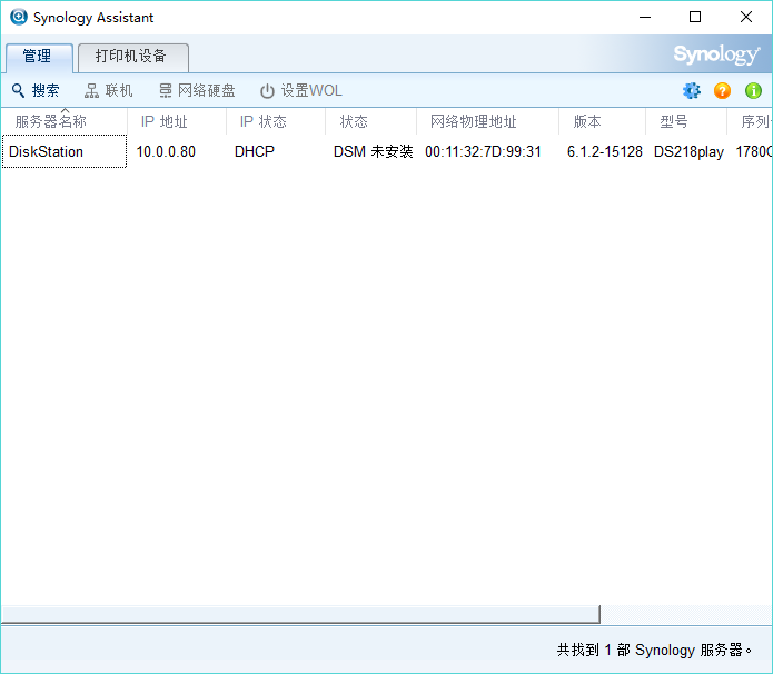 首先我們到官網下載Synology Assistant 。Synology Assistant是在局域網絡內安裝并管理Synology DiskStatio的工具,尤其當您同時有多臺DiskStation時在局域網絡內工作時。您也可以使用Synology Assistant為DiskStation安裝 DSM、設置 WOL、設置打印機,以及監控Synology DiskStation的資源。