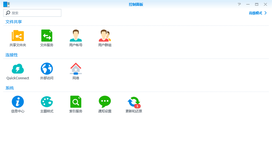 控制面板將大多數DSM 設置整合進易于導航的面板中,讓用戶將SynologyNAS 設備連接到網絡,使其可通過Internet被訪問,并設置文件共享、控制應用程序權限、管理系統和硬件設置等。