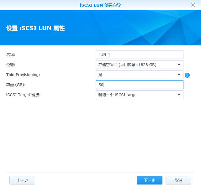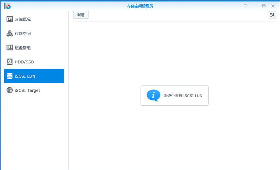 在存儲空間管理員中尋找到iSCSI LUN ,然后點擊新增。