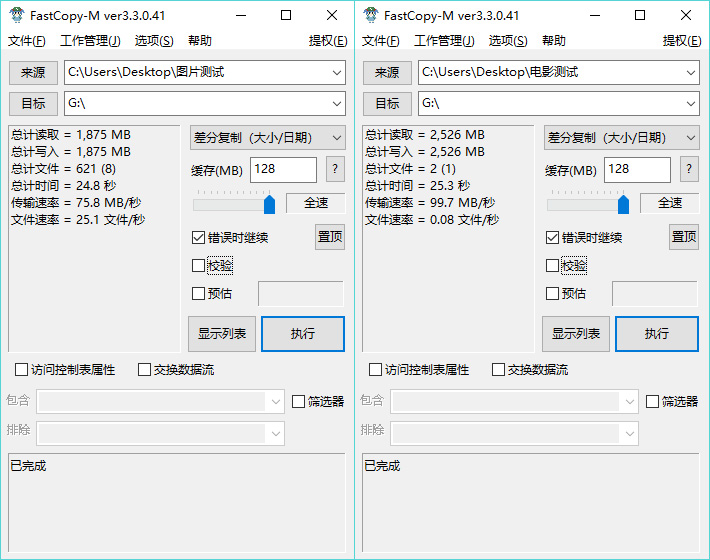 通過FastCopy測試圖片上傳速度為75.8MB/s,測試電影上傳速度為99.7MB/s。