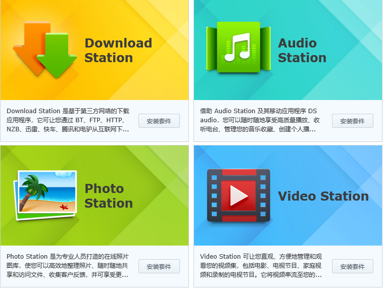 日常常用的套件有Download station,Audio station,Photo Station,Moments AI相冊、Video Station以及Drive與Cloud Sync。