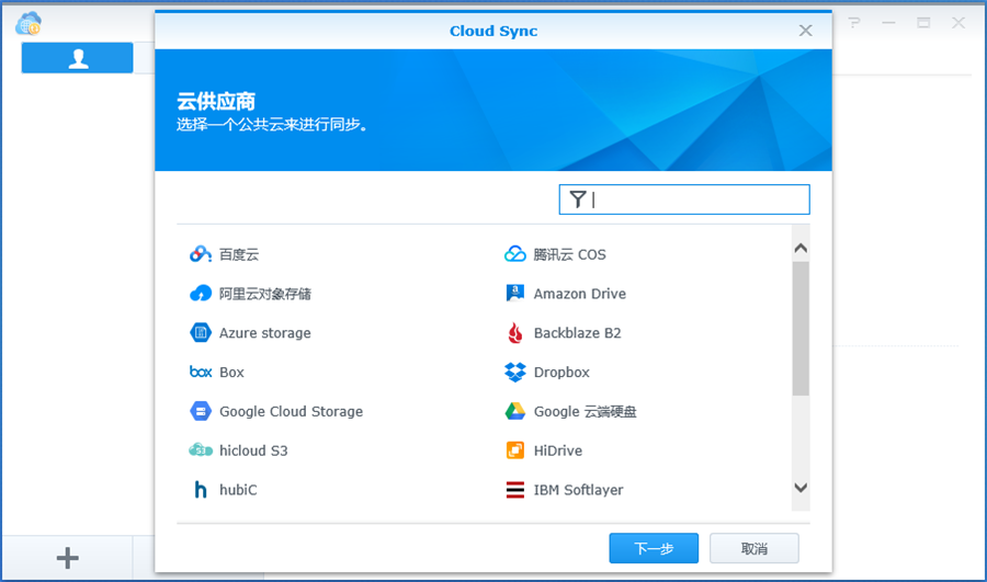 通過Cloud Sync,您可在DiskStation 與各種公有云(如百度云,騰訊云,Dropbox,阿里云和Google 云端硬盤) 之間無縫進行同步、分享文件。