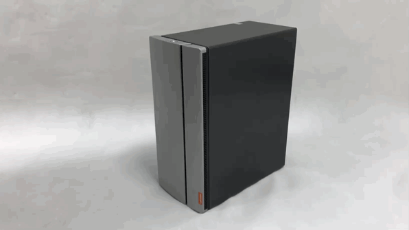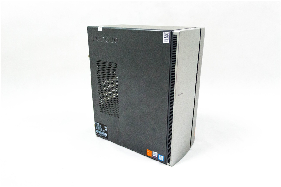 作為聯想當打的商務主機產品,天逸510pro的整體配色為銀灰+黑。機身前面板采用了拉絲工藝,黑色溝槽將銀灰色的正面分割成兩個區域,既兼顧了右側磁吸式翻門的功能,也使得正面不顯得單調。配合一左一右,一上一下的ideacentre和橙色Lenovo LOGO,凸顯了簡約精致的時尚商務氣息。