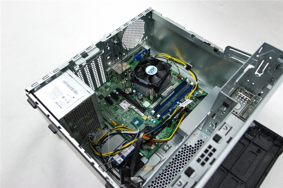 這次我們測評的這臺天逸510pro為i5-7400款,搭配了聯想定制的m-ATX B250主板,4G DDR4內存,16GB傲騰內存+1TB西數藍盤的存儲組合。這一配置絕對稱不上強大,將將能夠運行Win10 64位系統,搭載了USB3.0接口,符合主流的辦公需求。