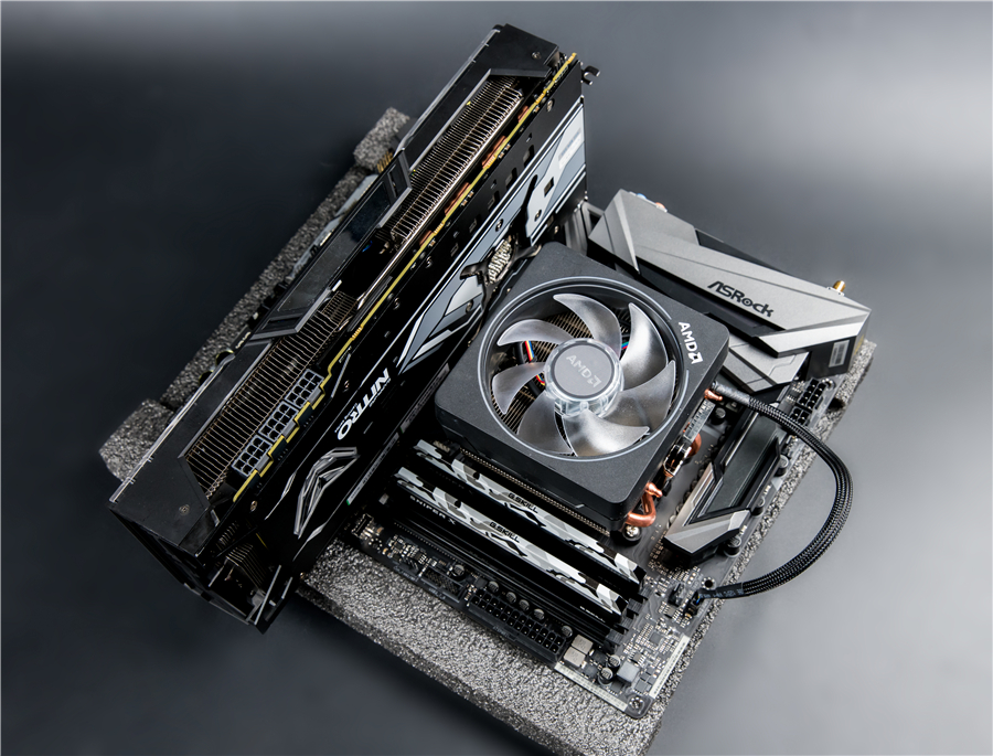 本次采用的是華擎X470 Taichi Ultimate主板。這款主板整體覆蓋了以齒輪為主題的散熱裝甲,復古與現(xiàn)代科技的交融帶來了滿滿的賽博朋克風。主板本身的燈效能與AMD原裝“幽靈”散熱器完美同步,配套天衣無縫。而華擎本身的技術(shù)實力與扎實做工使得這塊主板能夠賦予銳龍二代更大的發(fā)揮余地,華擎“妖板”的諢號是玩家對于這一品牌喜愛的最直觀反映。