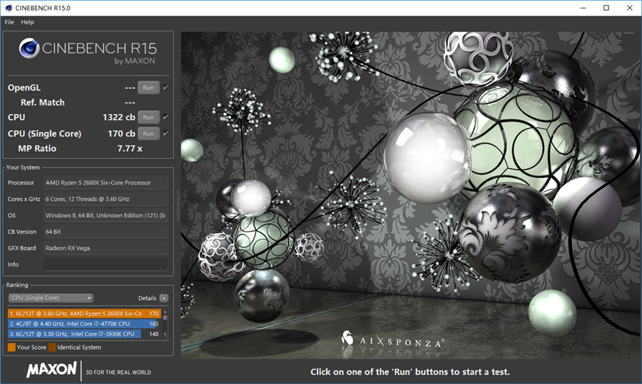 Ryzen 5 2600X Cinebench R15測試成績