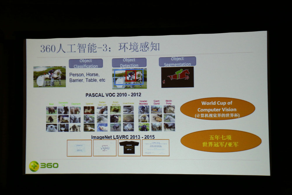 說道智能,又怎么少得了360所推出的人工智能呢?而360公司也在上海嘉里酒店舉辦了一場硬件新品發布會,發布會上奇虎360首席科學家人工智能研究院院長顏水成先生為與會嘉賓介紹360人工智能產品介紹以及其優勢特點。其融入了人臉識別技術以及語音識別技術,其產品已經顯露雛形,在較為模糊、和光照不同的環境影響下也能快速的識別,而語音識別錯字率已經降到1%,接著也對一些人工智能的應用范疇以及對人們的幫助進行了一次詳細的講解。
