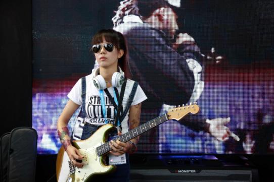吉他女樂手帥氣演奏