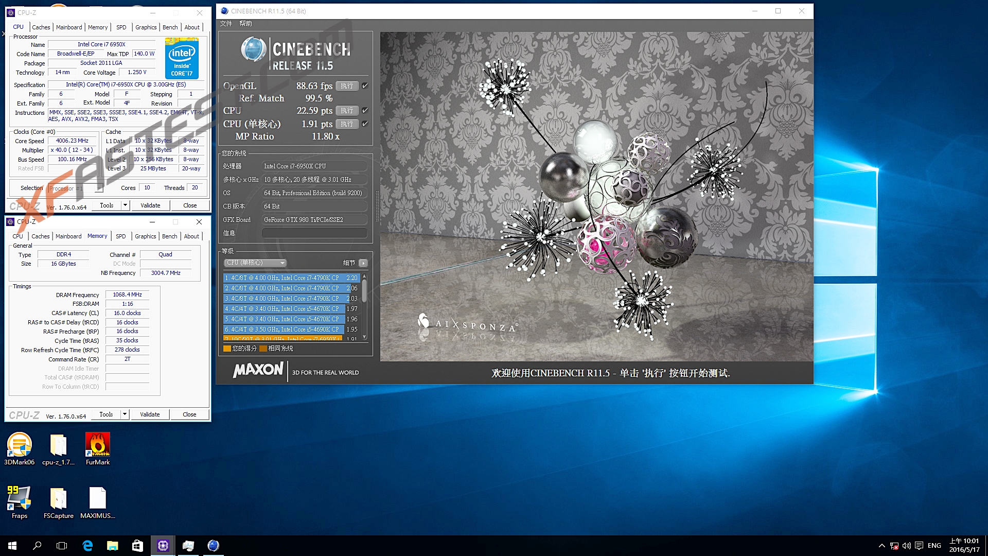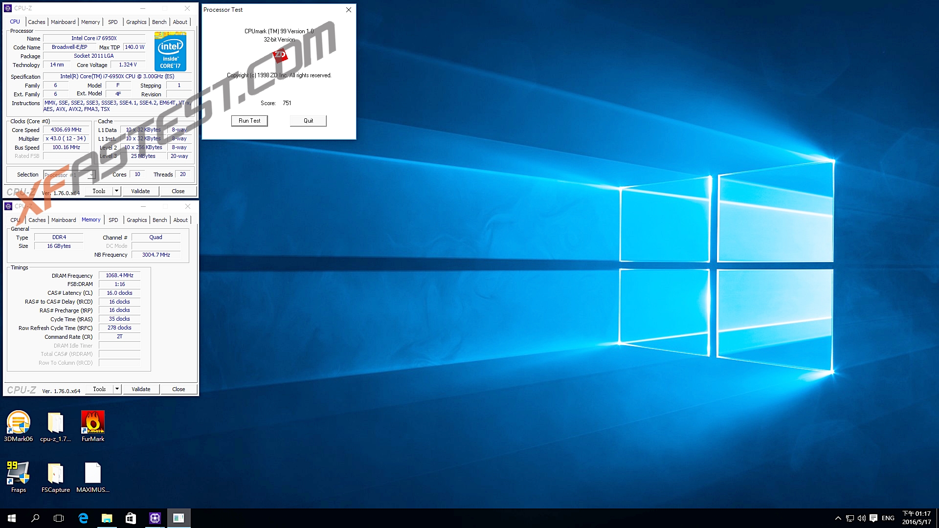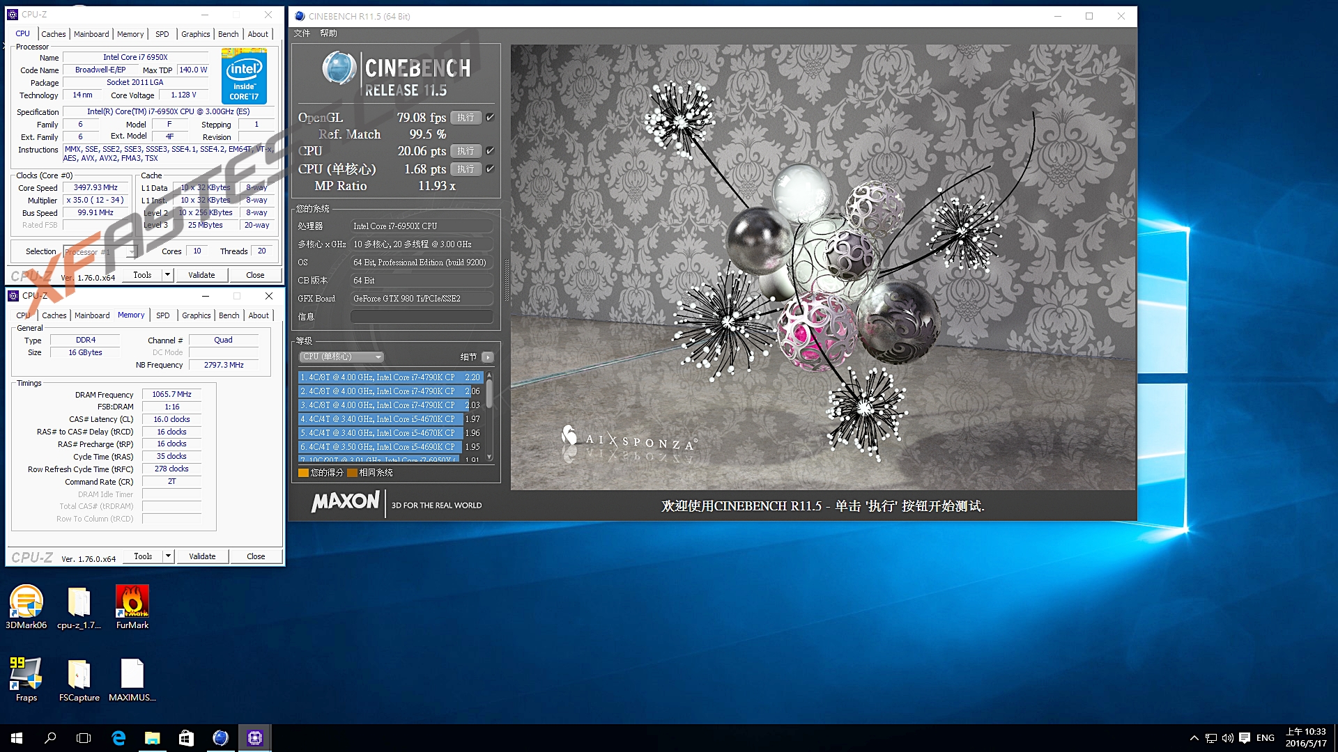 同場加映Intel i7-6950X 3.0GHz OC 4.3GHz 內存2133MHz效能測試