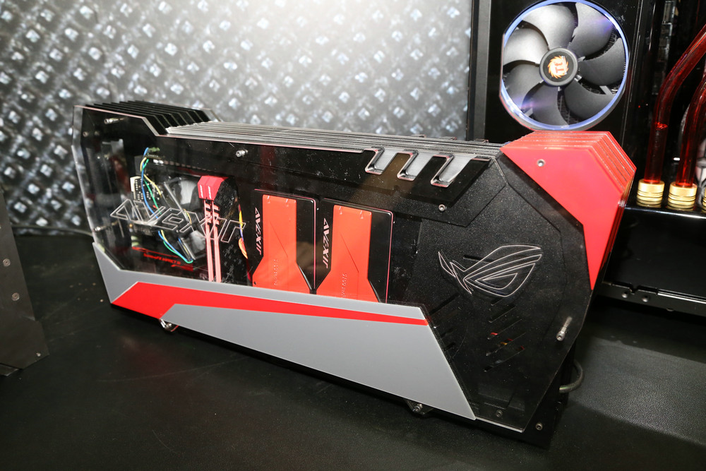 現(xiàn)場(chǎng)的玩家自定義主機(jī)也是別具一格,引來不少觀眾駐足欣賞,也是完全符合了雷電系列炫酷的風(fēng)格,除了采用宇帷雷電系列內(nèi)存,同樣也搭載了會(huì)發(fā)光的SSD,簡(jiǎn)直是炫酷的不行!