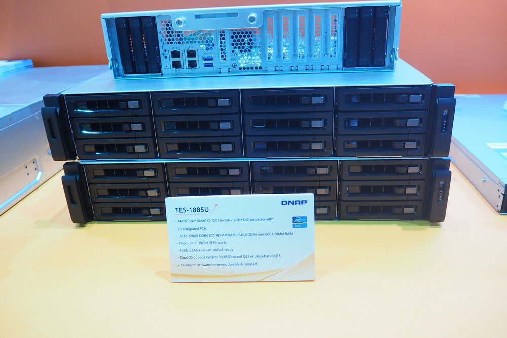 TS-1885U采用了Intel Xeon D 系列多核心處理器,最新 14 納米工藝超省電處理器,支持 DDR4 內存與 PCIe Gen.3 高速匯流排。四個DDR4 2133 MHz 內存插槽,支持 UDIMM 與 ECC RDIMM;UDIMM 型式內存可達 64GB,RDIMM 型式內存最高可擴充至 128GB。支持 SAS 12Gb/s 硬盤與 SSD,提供企業級高速穩定的儲存環境。四顆 6cm 高效散熱風扇。內建兩個 SFP+ 10GbE 網路口六個 2.5" SATA SSD 專用口可依據需求作為快取、高速儲存池或是 QES 操心系統盤。三個PCIe Gen. 3 高速接口,支持外接擴充 40GbE 網卡、10GbE 網卡與 PCIe NVMe SSD。
