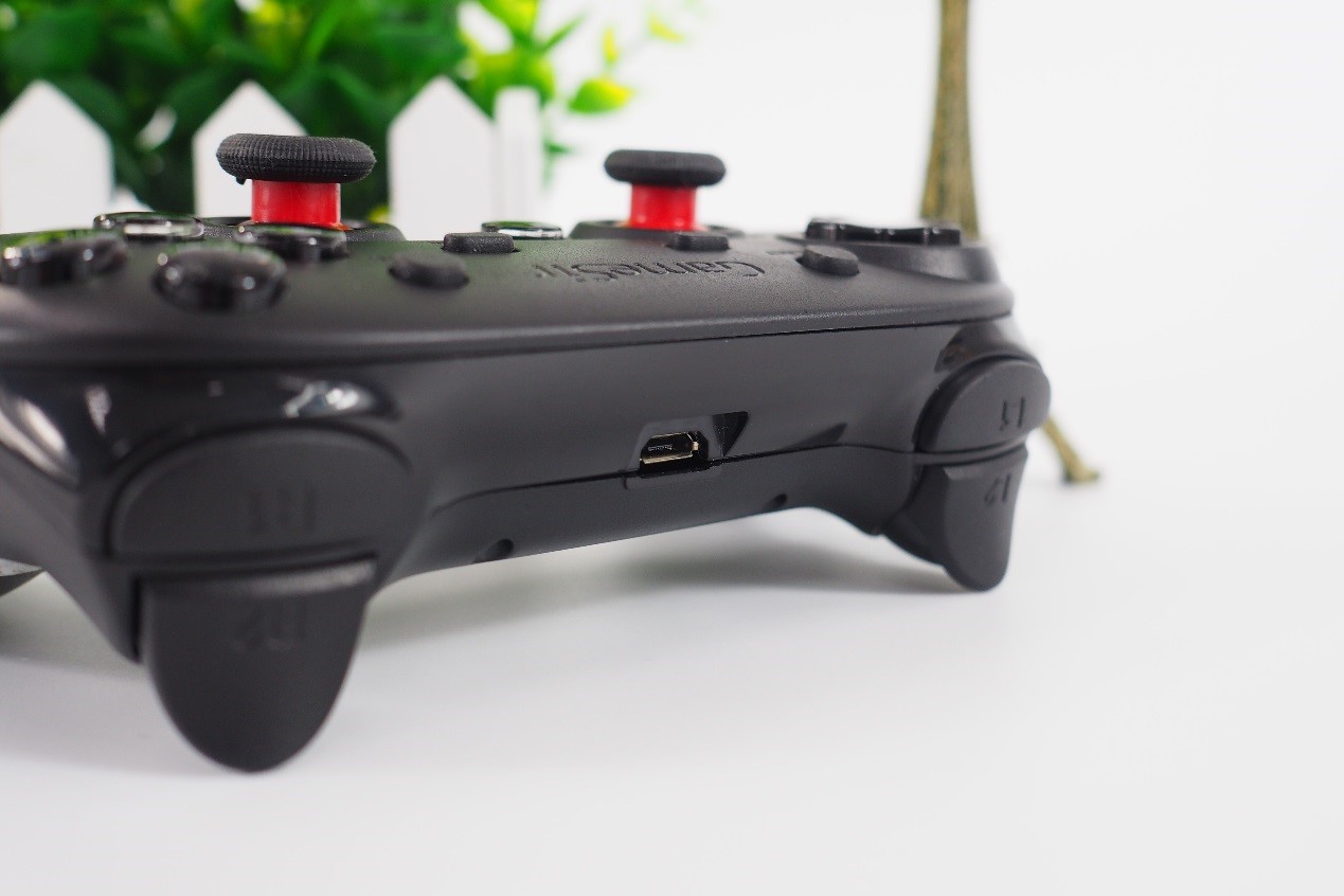 方向鍵的回饋力度和鍵程很舒服,玩格斗游戲挺好用的,有點偏軟,搓多了手也不疼。右邊的XYAB鍵回彈力很清晰,按一下就是一下。手機的背面是L1,L2 ,R1,R2四個按鈕。還有一個Micro USB接口用來連接PC