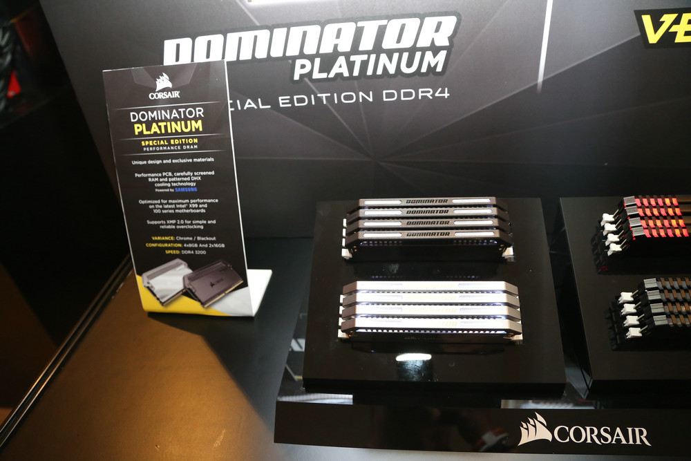 現場海盜船還展示了全新的PLATINUM系列DDR4內存,改進了發光設計,白色更有質感。存取速率最高達3300 MT/s。這系列產品除了3300MT/s還有兩個型號存取速度分別為3000MT/s和3200MT/s。而且高階版本能穩定的運行在4400的頻率。