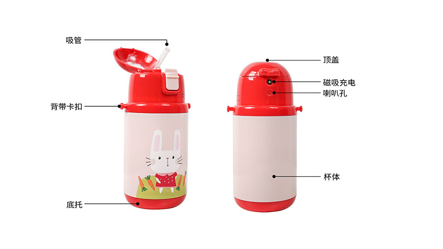 為了鍛煉孩子動手能力,水杯采用了磁吸充電方式。磁吸式充電口采用了防水設(shè)計,無漏電風險,孩子也可以自己動手,輕松充電。而且在給水杯充電時候,水杯會左右依次眨眼睛,充滿后兩只眼睛將會同時眨動,更加吸引孩子。