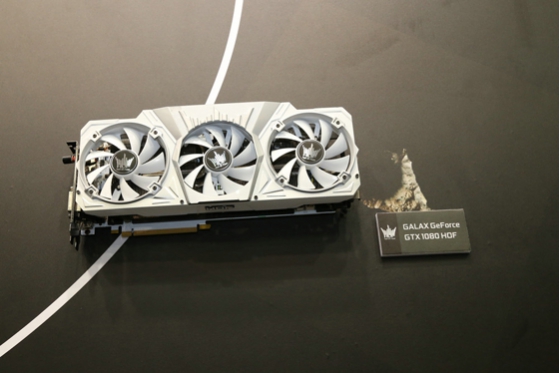 影馳在本屆展會中展出了黑將及名人堂GTX 1080、1070顯卡產(chǎn)品,這次的名人堂最新作品依然保持了超豪華的規(guī)格,擁有更炫的燈光設(shè)計,扎實的12層PCB、數(shù)字供電系統(tǒng),白色PCB,無一不是奢華的象征。此外,這次還專門推出了支撐桿,讓越來越厚重的顯卡能夠更穩(wěn)固的安裝在機箱中。