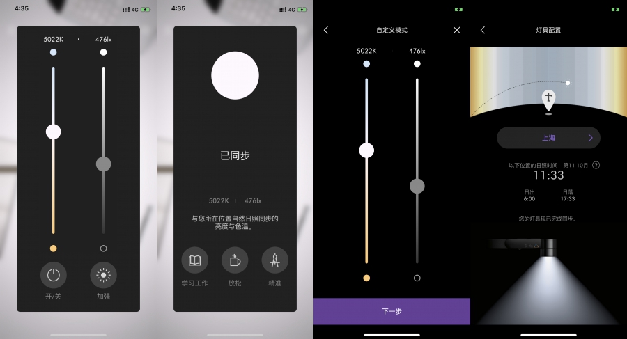 想要使用這個功能只需連接Dyson Link App,連接后設定好所在的城市,App便會自動推斷出所在地的日出日落時間。這個App沒有什么太多可以介紹的地方,基本上就是把Lightcycle上的一些開關放在了手機上,多了一個自定義模式功能,你可以將亮度和色溫調節到一個你喜歡的水平,之后保存即可。這么看來Dyson Link為這款Lightcycle臺燈準備的功能也確實不多,比如定時開關燈、或者是定時閃光提示等功能都沒有。但其實戴森Lightcycle想要的并不是這些花里胡哨的東西,而是更加務實、讓人更加專注的照明體驗。這么說吧,戴森Lightcycle是一款“能夠自己照顧自己”的臺燈。